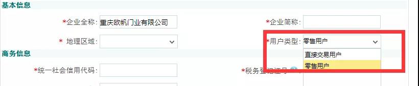 選擇用戶類型分兩種,一種為直接交易用戶(與電廠直接進(jìn)行交易的用戶),一種為零售用戶(由售電公司代理的用戶),注意別選擇錯(cuò)誤。