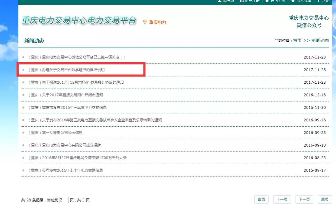 大用戶(與電廠進(jìn)行直接交易的用戶)需要辦理數(shù)字證書,零售用戶(由售電公司代理進(jìn)行交易的用戶)不強(qiáng)制辦理數(shù)字證書(根據(jù)自身需求),辦理數(shù)字證書流程請(qǐng)查看重慶電力交易中心交易平臺(tái)首頁新聞動(dòng)態(tài)欄目文件“辦理關(guān)于交易平臺(tái)數(shù)字證書的詳細(xì)說明”,如下圖: