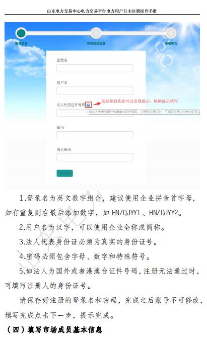 山東電力交易中心日前發(fā)布了《山東電力交易平臺電力用戶自主注冊操作手冊》,溫馨提示:基本信息中新增了幾個字段信息,請注冊時進(jìn)行完善補(bǔ)充。