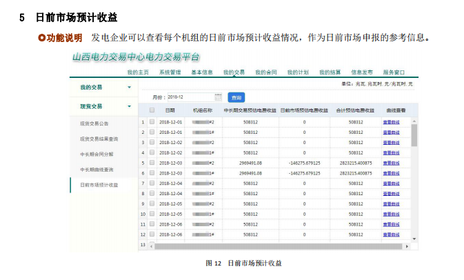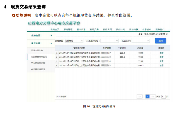 另外印發(fā)了現(xiàn)貨申報(bào)操作手冊(cè):發(fā)電企業(yè)現(xiàn)貨功能包括中長(zhǎng)期合同分解,中長(zhǎng)期曲線查詢、現(xiàn)貨交易公告、現(xiàn)貨交易結(jié)果查詢、日前市場(chǎng)預(yù)計(jì)收益;電力用戶現(xiàn)貨功能包括中長(zhǎng)期合同分解確認(rèn)、現(xiàn)貨交易公告。