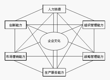 普拉哈拉德和加里˙哈默爾兩位教授,于1990年發(fā)表在《哈佛商業(yè)評論》上的《企業(yè)的核心競爭力》一文中,首次提出了核心競爭力的概念。核心競爭力是由圍繞企業(yè)所擁有的與眾不同的資源稟賦而形成的能力體系,是企業(yè)持續(xù)競爭的源泉和基礎(chǔ)。根據(jù)“核心競爭力鉆石模型”理論,企業(yè)核心競爭力的決定因素主要包括企業(yè)文化、人力資源、創(chuàng)新能力、組織管理能力、市場營銷能力、戰(zhàn)略管理能力、生產(chǎn)和服務(wù)能力這七個方面,以及這七個方面的相互聯(lián)系。