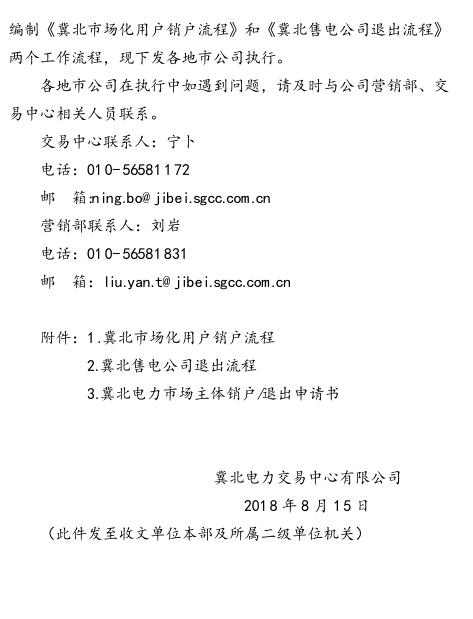 冀北電力交易中心日前發(fā)布了《關(guān)于印發(fā)冀北市場(chǎng)化用戶銷戶流程及售電公司退出流程的通知》,規(guī)定了用戶銷戶流程和售電公司退出流程。