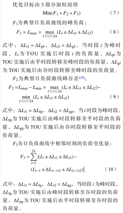TOU 優(yōu)化目標(biāo)是盡可能削峰填谷,減小系統(tǒng)備用容量,充分利用谷時(shí)段電量,從而達(dá)到提高系統(tǒng)負(fù)荷率、運(yùn)行效率和穩(wěn)定性的目的。