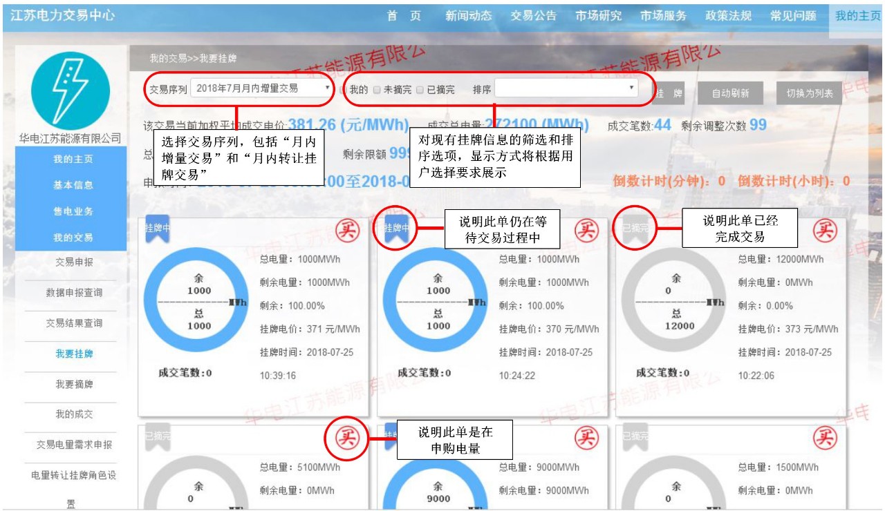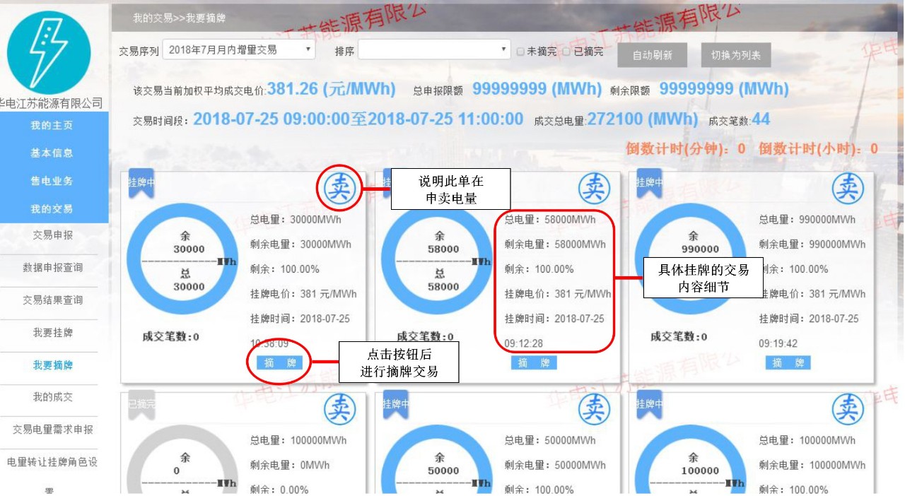 摘牌時(shí),相對(duì)出錯(cuò)的概率較小,因?yàn)槟憧梢悦鞔_的看到所要摘的牌,到底是買電還是賣電(在掛牌信息中的右上角有一個(gè)紅色的字,“買”代表此牌為申購(gòu)方掛的,“賣”代表此牌為售電方掛的)。