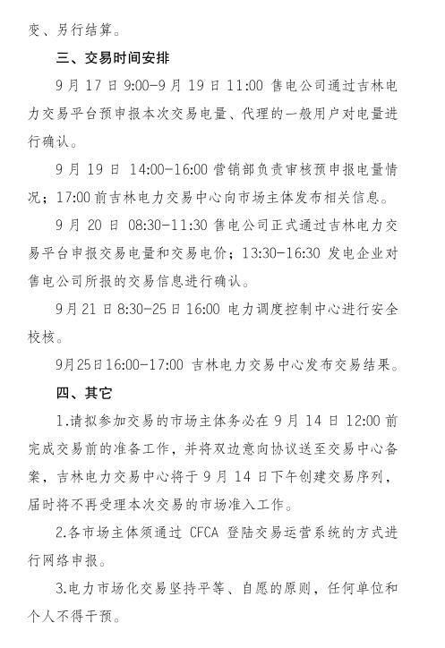 吉林電力交易中心日前發(fā)布了《關于開展吉林省2018年售電公司代理一般用戶年度交易的通知》,將于2018年9月17日至25日在吉林電力交易平臺上組織售電公司代理一般用戶開展市場化交易。本次交易采取雙邊自主協(xié)商方式進行。各市場主體經協(xié)商并達成一致意見后,登陸吉林電力交易平臺進行交易,采用購電方申報、售電方確認模式。 電量單位為兆瓦時,電量精確到整數(shù)位,電價單位為元/兆瓦時,電價精確到0.1元/兆瓦時。