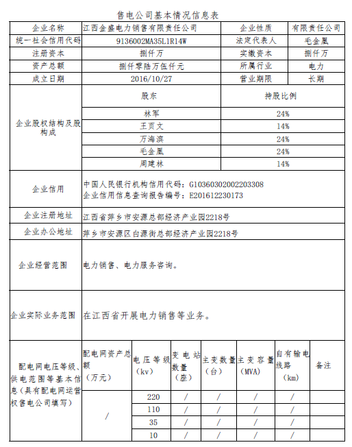 江西電力交易中心有限公司關(guān)于公示受理注冊的售電公司相關(guān)信息的公告按照國家發(fā)改委、國家能源局《售電公司準(zhǔn)入與退出管理辦法》的要求,江西電力交易中心有限公司受理了下列公司的注冊申請,對售電公司提交的市