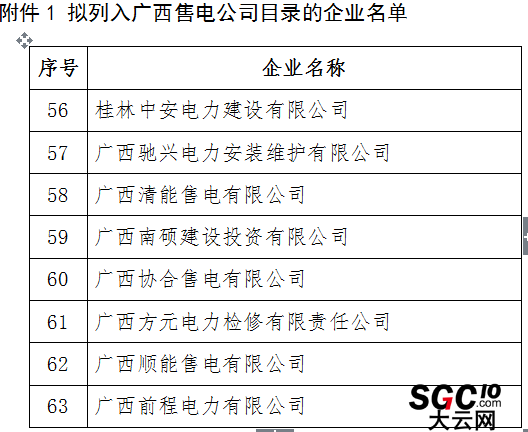 關于擬列入廣西售電公司目錄企業(yè)有關信息的公示