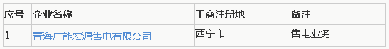 按照國家發(fā)改委、國家能源局《售電公司準入與退出管理辦法》(發(fā)改經體〔2016〕2120號)的要求,青海電力交易中心有限公司受理了下列售電公司的注冊申請,現(xiàn)將企業(yè)名單及基本情況予以公示。
