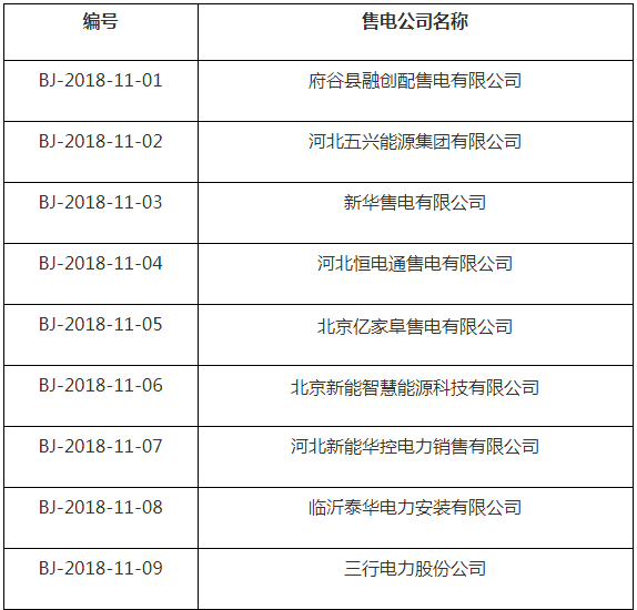 北京電力交易中心關(guān)于售電公司公示結(jié)果的公告