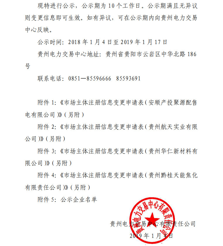 貴州發(fā)布了《關(guān)于安順產(chǎn)投聚源配售電有限公司等4家市場(chǎng)主體注冊(cè)信息變更公示的通知》
