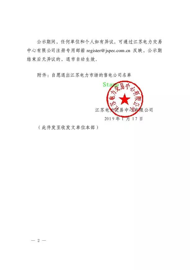 公示期間,任何單位和個人如有異議,可通過江蘇電力交易中心有限公司注冊專用郵箱register@jspec.com.cn反映,公示期結束后無異議的,退市自動生效。