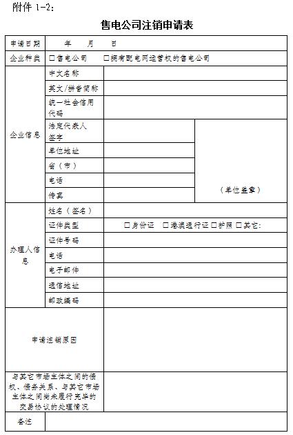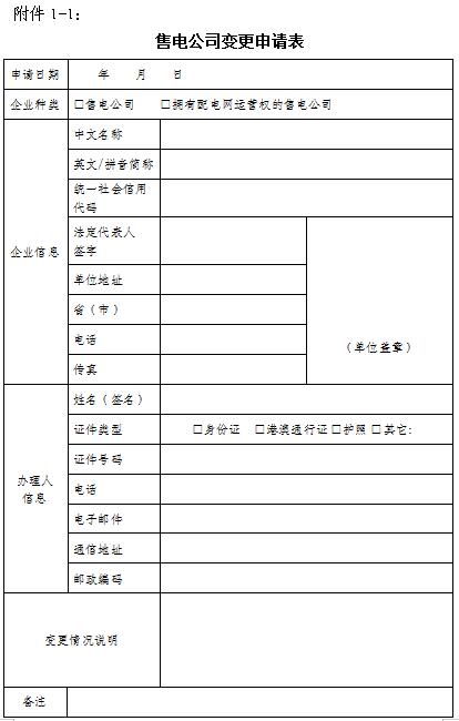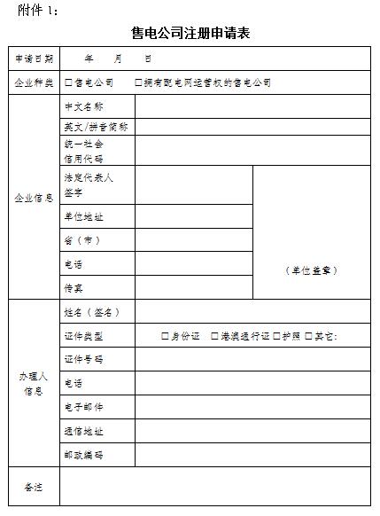 1.“售電公司申請表”按照附件1表格格式填寫。