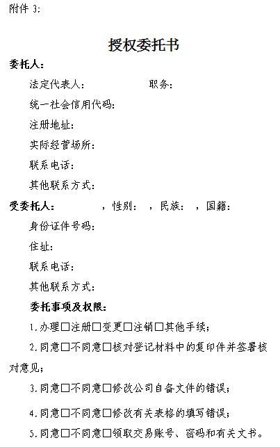 3.“授權(quán)委托書”按照附件3樣式填寫(填寫時注意授權(quán)書模板下方的說明)。
