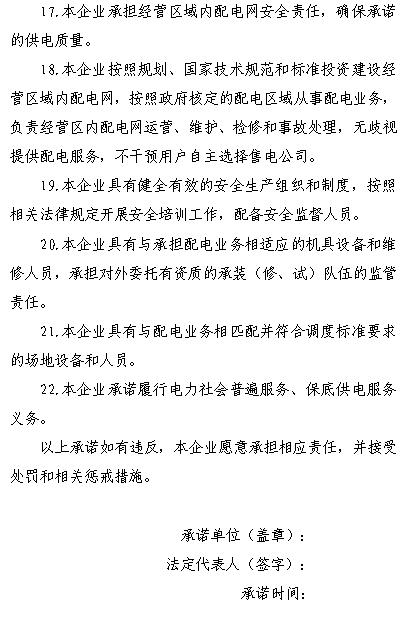 13. 申請配電網(wǎng)營業(yè)權(quán)的售電公司,確定供電營業(yè)范圍,獲得政府主管部門的核準(zhǔn)文件及由國家能源監(jiān)管機(jī)構(gòu)頒發(fā)的供電營業(yè)許可證。