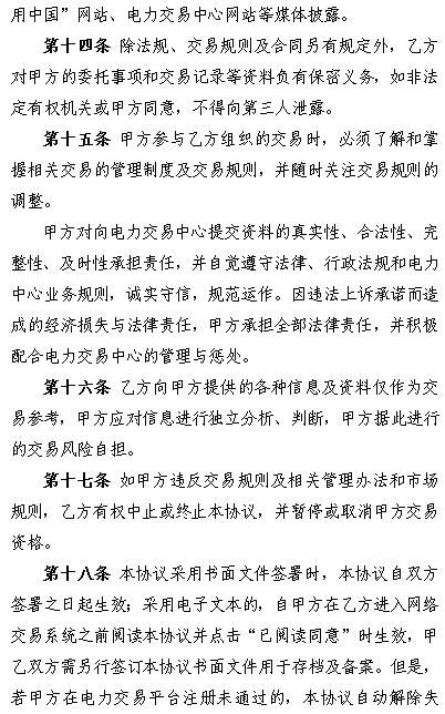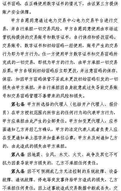 7. 售電公司注冊“入市協(xié)議”按照附件7樣式填寫,并進(jìn)行簽署、蓋章。