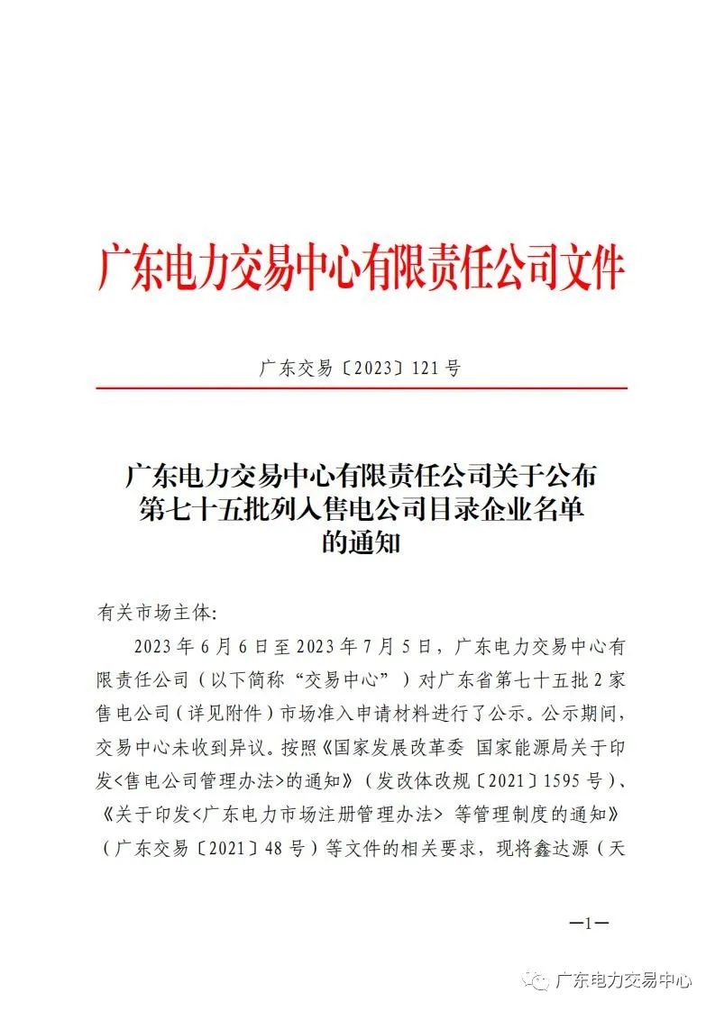日前廣東電力交易中心公布第七十五批列入售電公司目錄企業(yè)名單。詳情如下:<