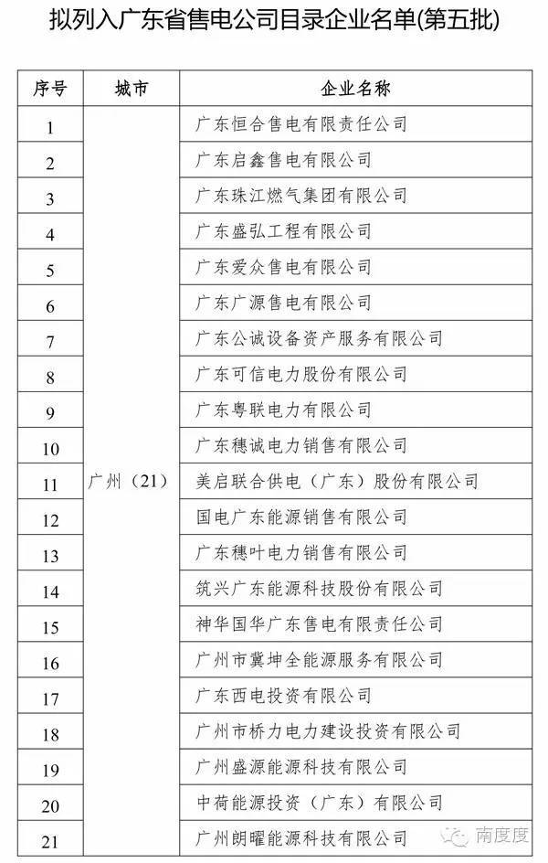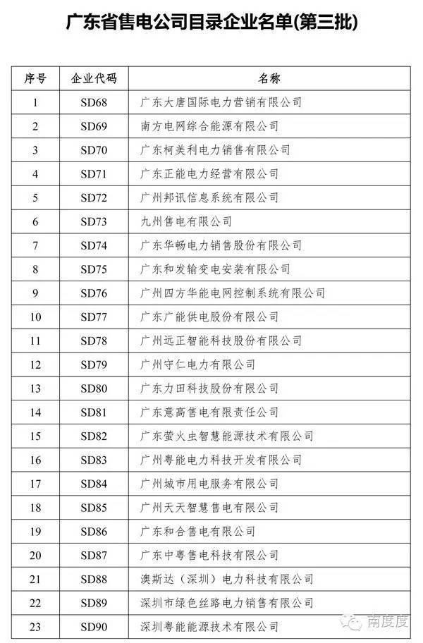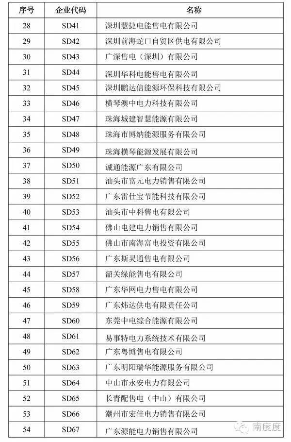 廣東省售電公司目錄企業(yè)名單