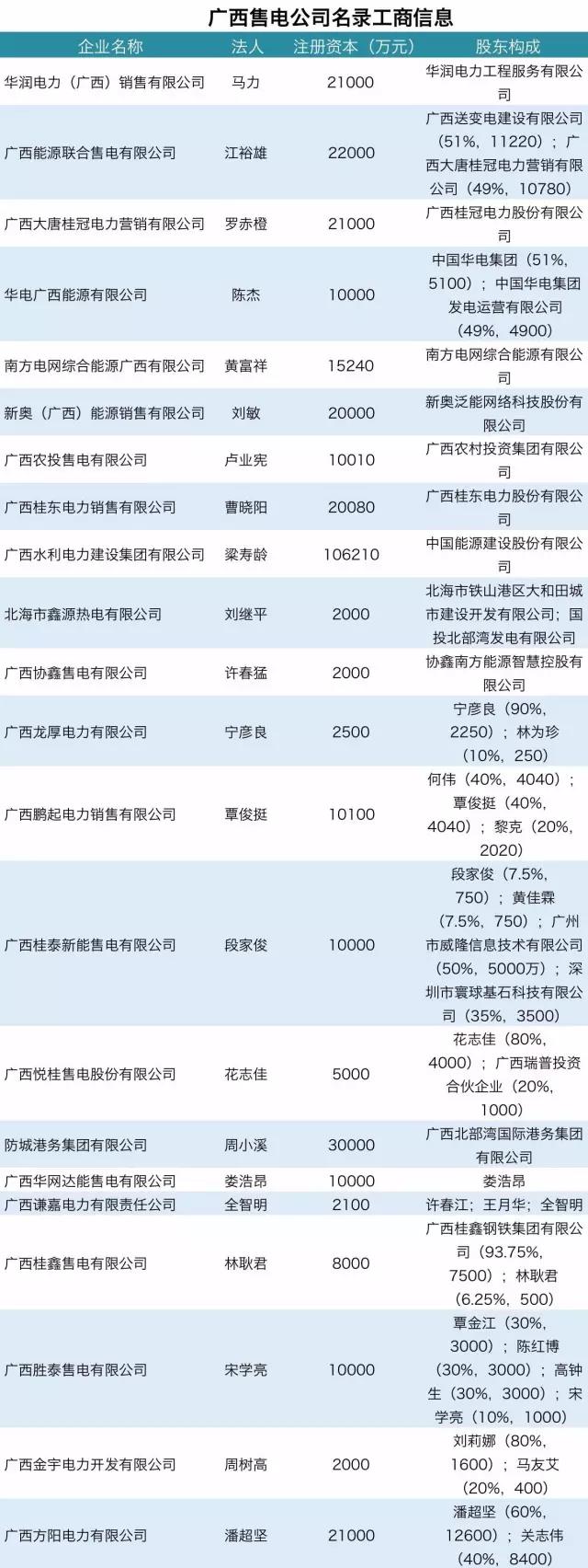 原標(biāo)題:廣西已通過(guò)公示的33家售電公司詳細(xì)股東信息,不少?gòu)V東殺過(guò)去的