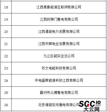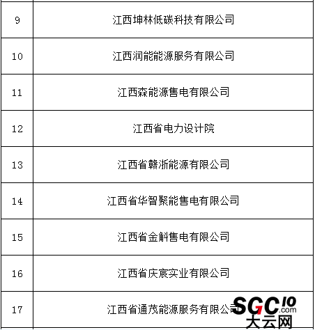 公示期間,任何單位和個人如有異議,可通過來電、來信、來訪等方式向江西電力交易中心有限公司實名反映。本次公示售電公司目錄如下: