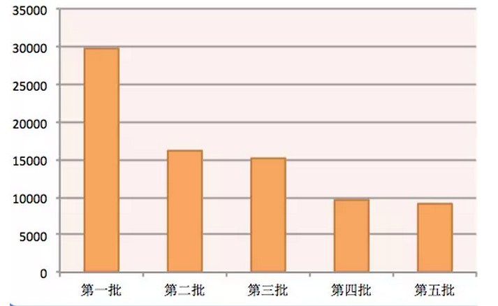 如果注冊資本與公司規(guī)模完全沒有關(guān)系,那么此圖的各批數(shù)據(jù)應(yīng)該是隨機分布。然而并事實并非如此,從第一批到第五批,售電公司確實經(jīng)歷了從實力雄厚、以大型發(fā)電集團、國企等背景向平均水平的社會資本轉(zhuǎn)變的過程。