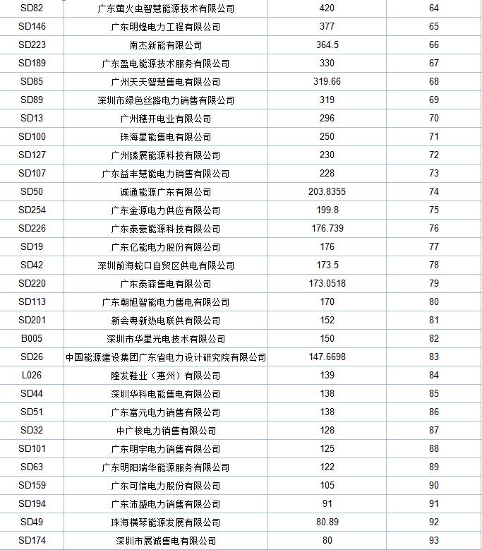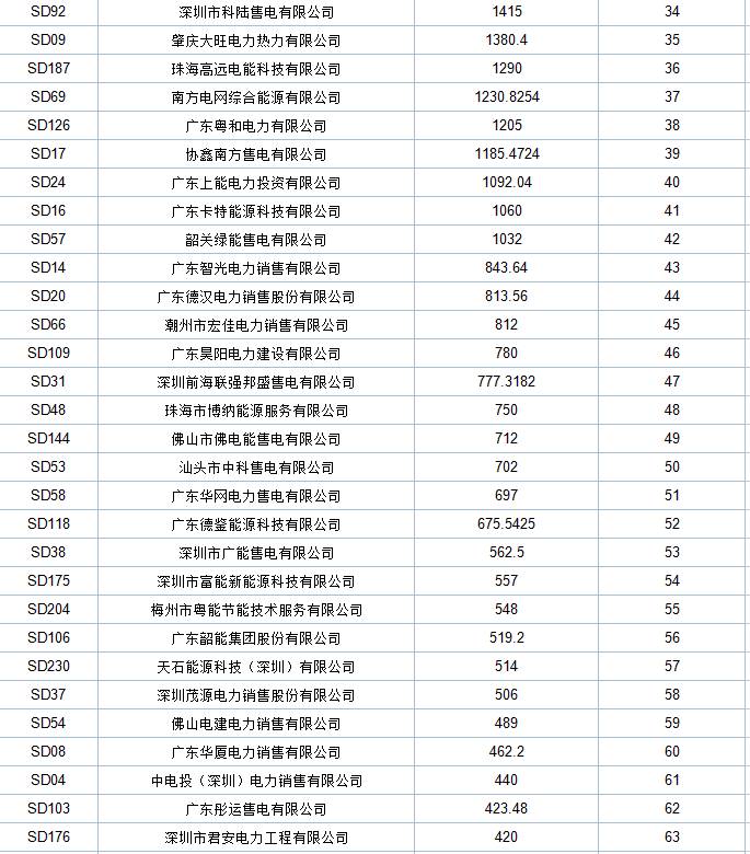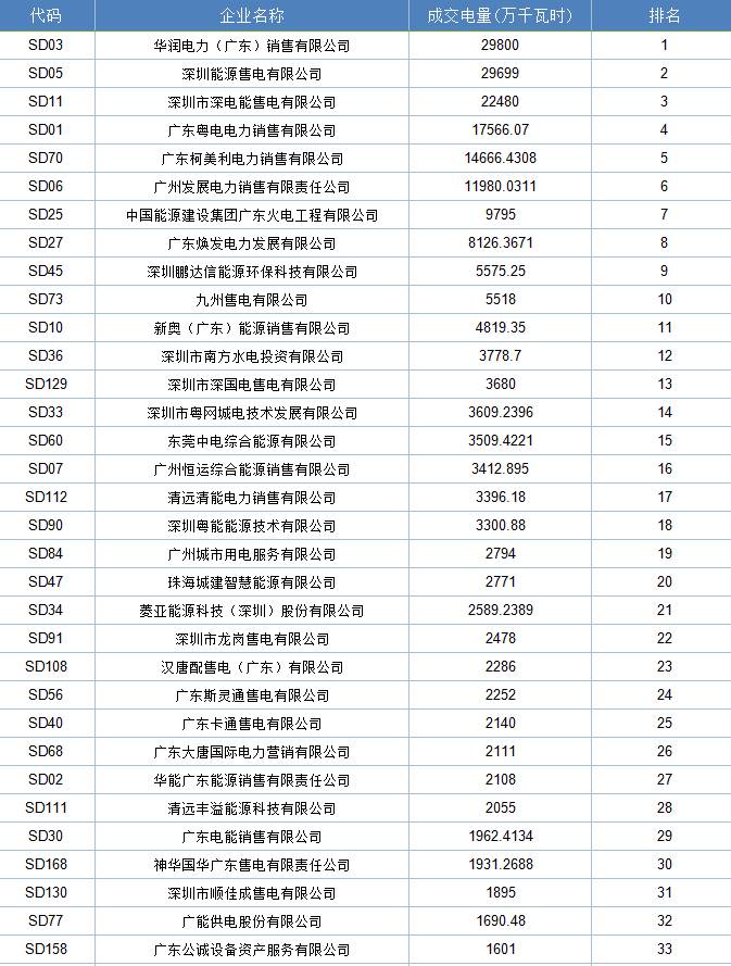 附:廣東售電公司6月份月度集中競價成交統(tǒng)計表: