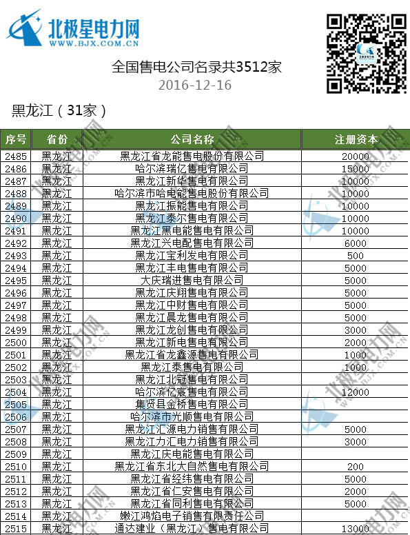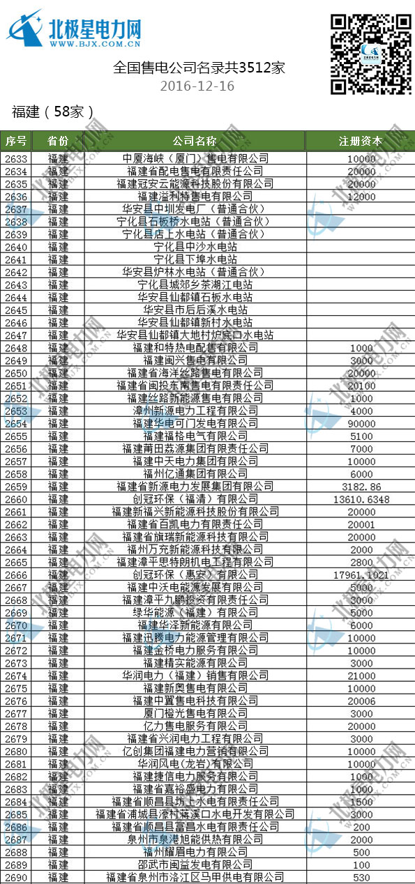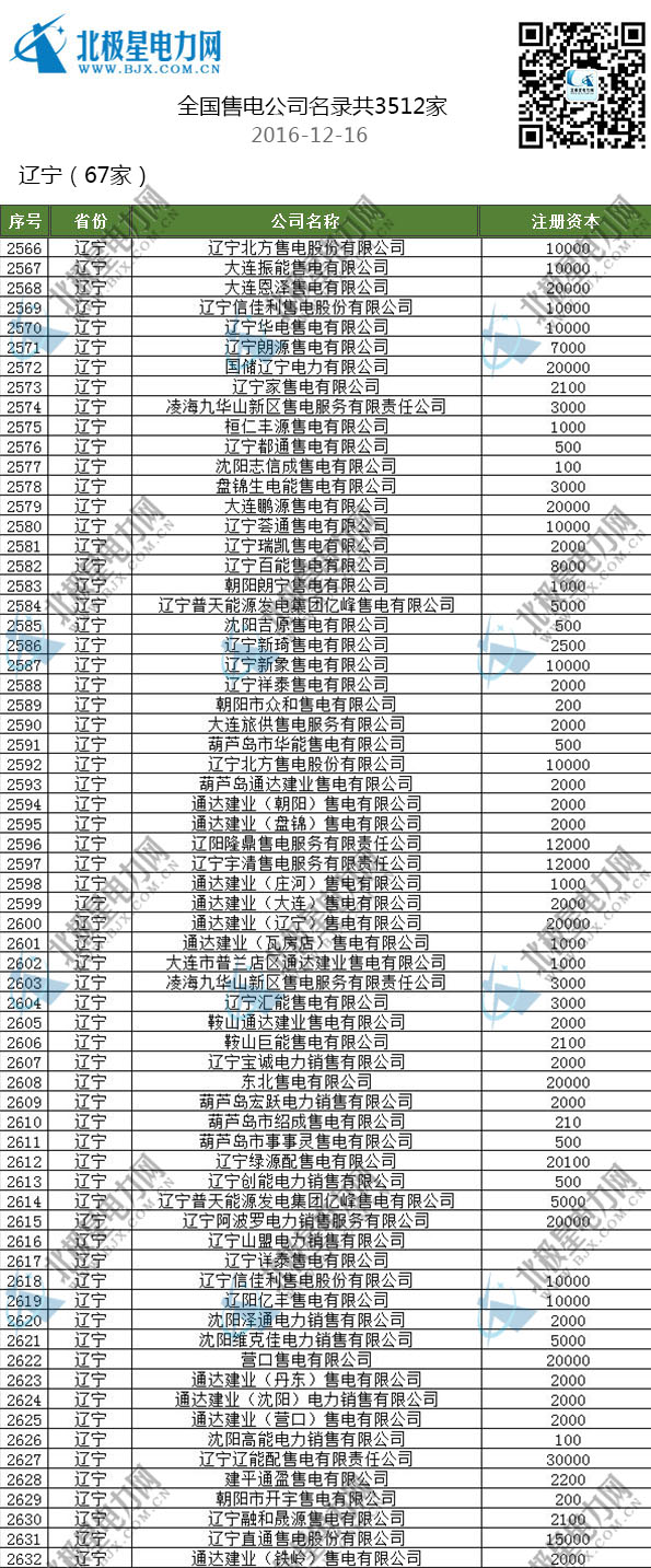 售電公司名單/全國已成立3512家售電公司(截止2016-12-16)