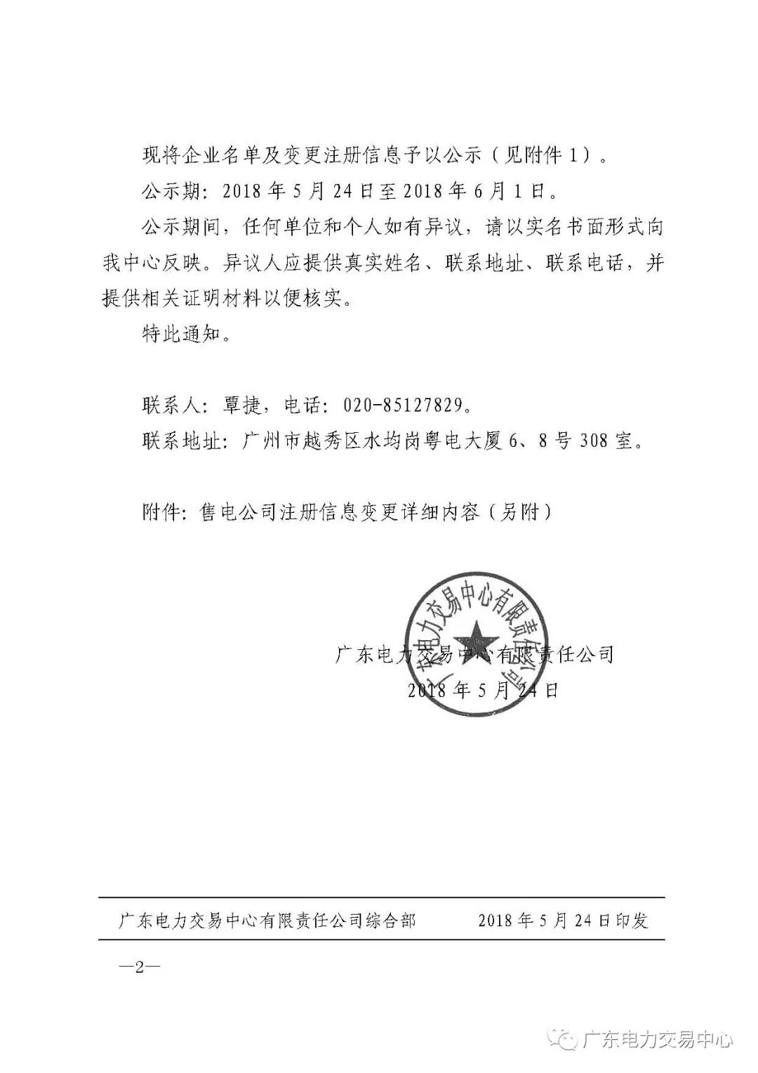 通知 | 關(guān)于公布廣東南電建設(shè)集團(tuán)有限公司等兩家售電公司注冊信息變更的通知