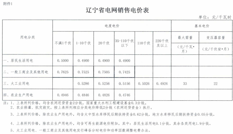 附件:1、遼寧省電網(wǎng)銷(xiāo)售電價(jià)表