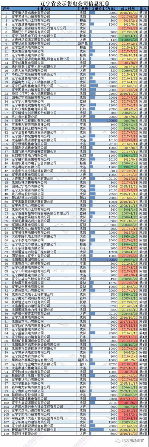 圖解 | 遼寧六批110家售電公司公示信息匯總