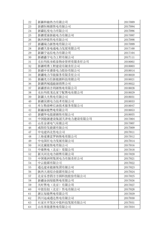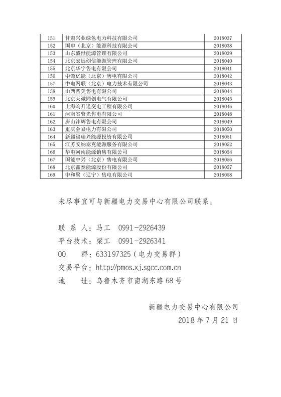 新疆電網(wǎng)2018年第二批發(fā)電企業(yè)與電力用戶直接交易售電公司名單