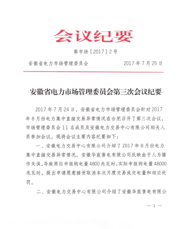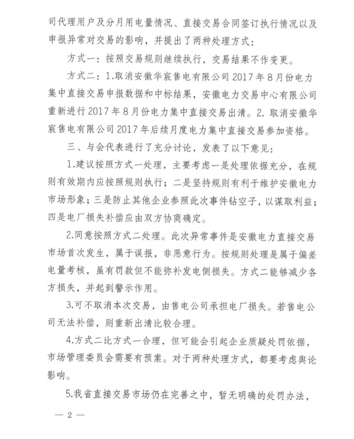 以下為安徽電力交易中心處理結果。
