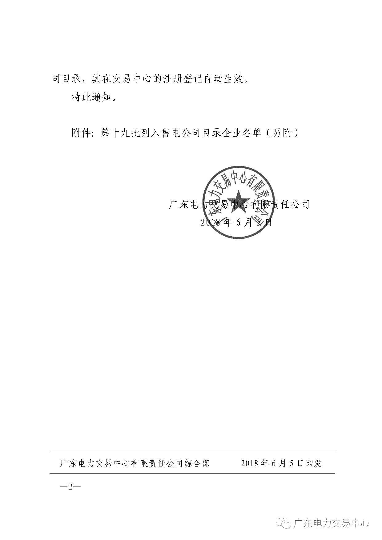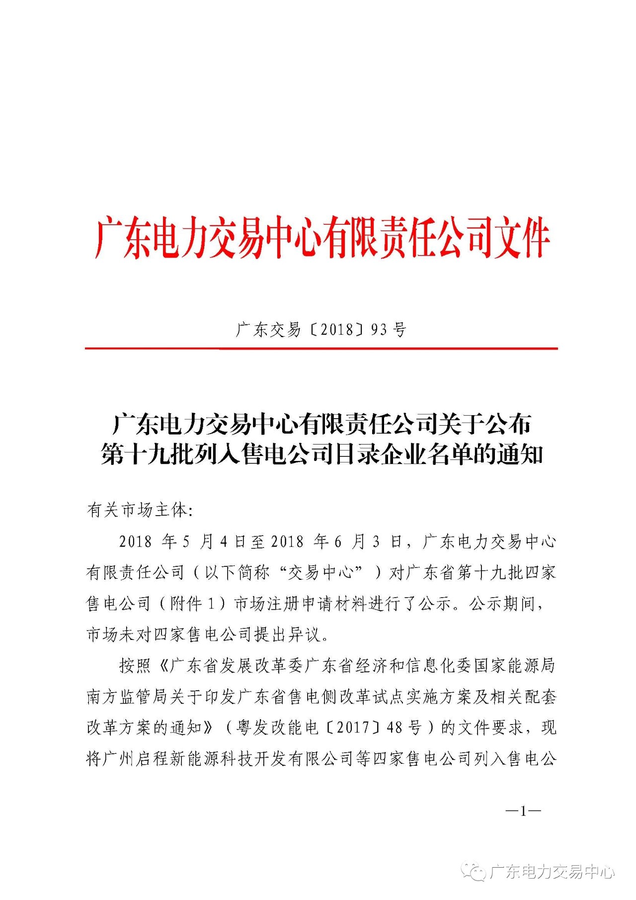 2018年5月4日至6月3日,廣東電力交易中心對(duì)廣東省第十九批四家售電公司市場(chǎng)注冊(cè)申請(qǐng)材料進(jìn)行了公示。公示期間,市場(chǎng)未對(duì)四家售電公司提出異議,現(xiàn)將四家售電公司列入售電公司目錄,通知正文如下: