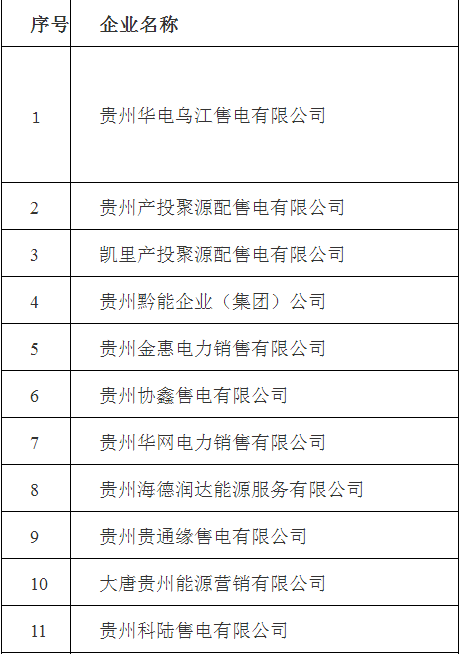 貴州省能源局日前發(fā)布了61家售電公司備案手續(xù)公告。