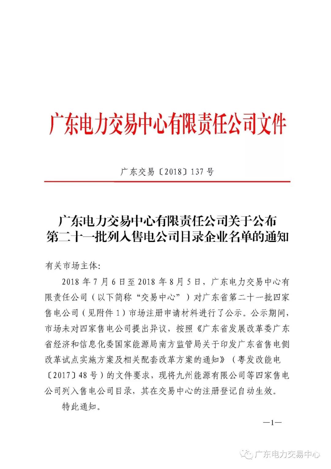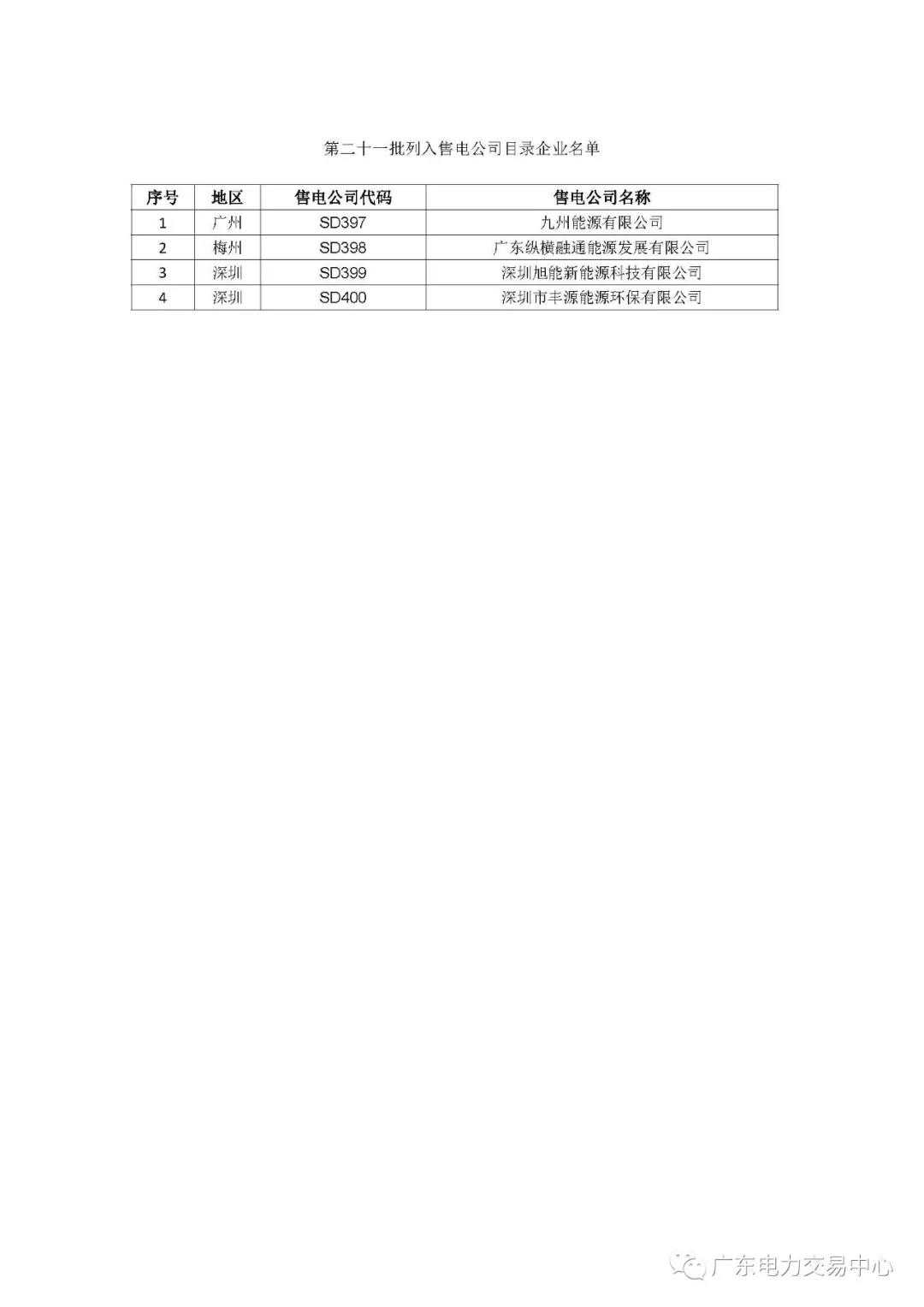 通知 |廣東 關(guān)于公布第二十一批列入售電公司目錄企業(yè)名單的通知