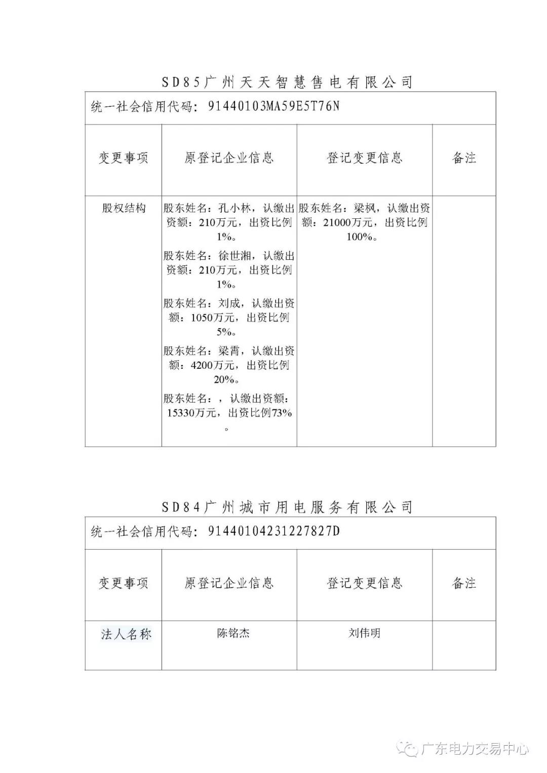 通知 | 關(guān)于公布深圳市深電能售電有限公司等七家售電公司注冊信息變更的通知