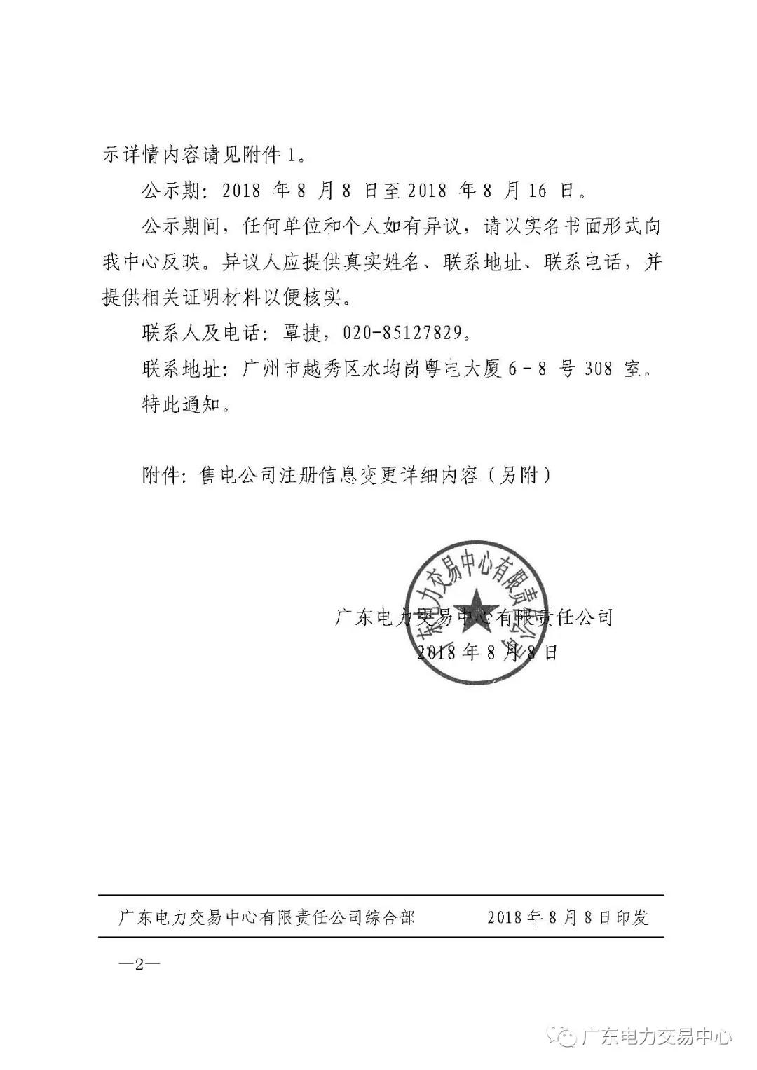 為做好售電公司的注冊信息變更等相關(guān)工作,廣東電力交易中心現(xiàn)對2018年7月申請變更的七家售電公司變更注冊信息進(jìn)行公示,公示正文如下: