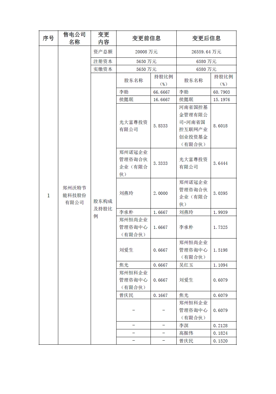 河南電力交易中心對鄭州沃特節(jié)能科技股份有限公司提交的市場注冊信息變更材料進(jìn)行了受理,現(xiàn)將有關(guān)情況予以公示。公示期:2018年8月22日至2018年9月21日,時(shí)間1個(gè)月。