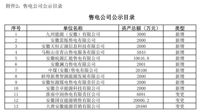 安徽公示2018年第三批13家售電公司和1家發(fā)電企業(yè)