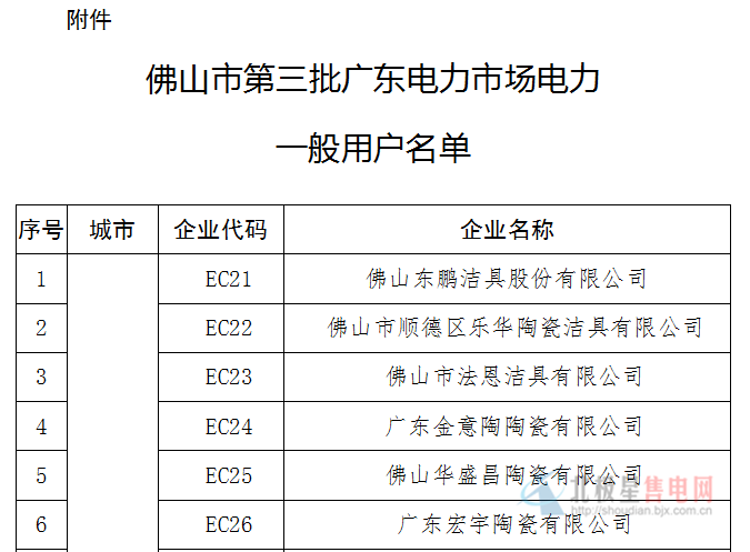 廣東佛山市第三批廣東電力市場電力一般用戶名單
