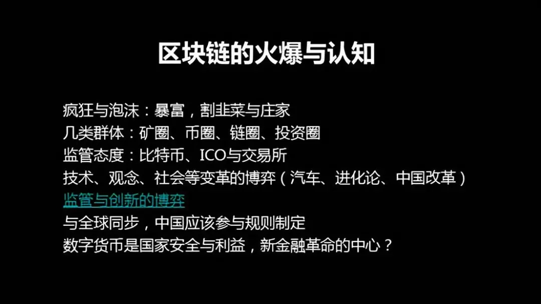 第一,財(cái)富效應(yīng)引發(fā)了區(qū)塊鏈的關(guān)注。區(qū)塊鏈的確有人暴富,最夸張一個(gè)人,去年5月份的時(shí)候,完全沒有錢,借了五萬塊錢,全部投入各種加密幣,他現(xiàn)在現(xiàn)金兩個(gè)多億。當(dāng)然也有人詐騙,,也有很多問題,暴富、割韭菜和莊家等這些問題的出現(xiàn),不僅在區(qū)塊鏈上,在任何行業(yè)任何創(chuàng)新產(chǎn)品都存在,往往這些人帶動(dòng)了整個(gè)社會(huì)關(guān)注,有一批暴富的人才產(chǎn)生財(cái)富效用,吸引另一大批人沖進(jìn)去。但是這個(gè)過程中要允許很多人暴富,這是正常的。其實(shí)在座很多企業(yè)家早期成功都算是暴富的。