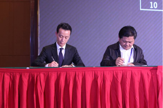 金恪金控總裁吳松(左)與文昌市副市長符策萬(右)現(xiàn)場簽