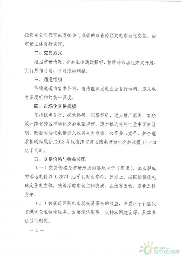 交易價格是市場形成的落地電價(河南),試點形成 的落地電價以0.2879元/千瓦時為參考。原則上,按照價格優(yōu)先 確定售電主體,統(tǒng)籌考慮市場主體資質(zhì)、業(yè)績等因素,避免惡性競爭。
