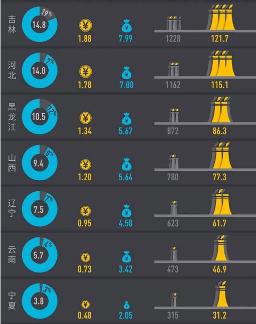 相比二季度,新疆和甘肅三季度棄風量共下降23.6億千瓦時,棄風率分別下降7和9個百分點。從2016年至今,該兩省區(qū)的季度棄風率首次低于30%,但仍然處于風電投資橙色警戒線(20%)以上。而與西北地區(qū)相比,東北地區(qū)的吉林、黑龍江和遼寧棄風率相比二季度進一步下降,都在5%以下。