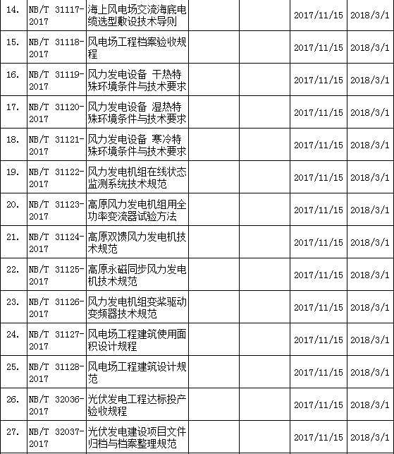 國家能源局發(fā)布2017年第10號公告:批準(zhǔn)17項風(fēng)電標(biāo)準(zhǔn)(附目錄)