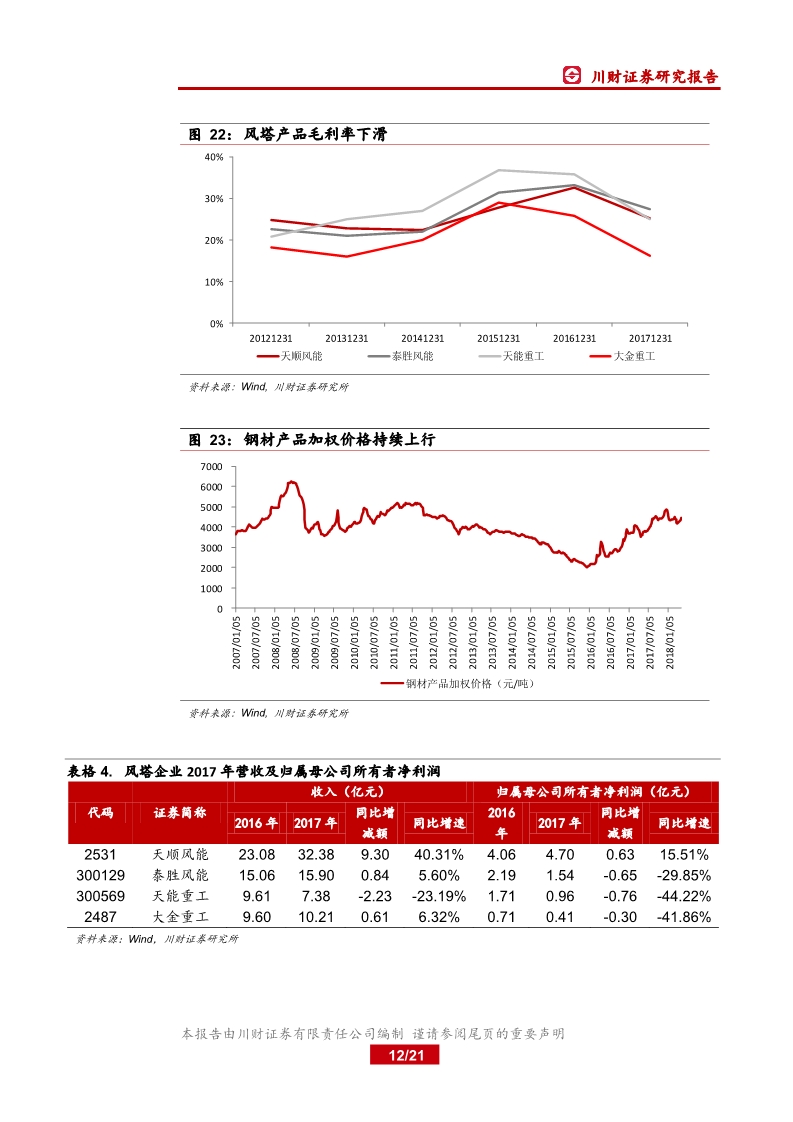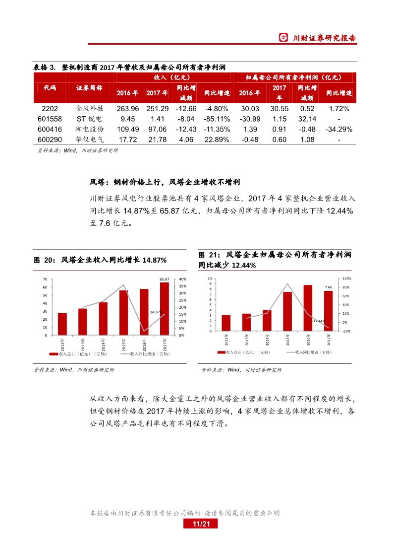 2017 年業(yè)績分化,運(yùn)營商盈利顯著改善2017 年我國新增并網(wǎng)、吊裝裝機(jī)分別同比下滑 22 12%、16 22%,棄風(fēng)率有所下降,全年風(fēng)電發(fā)電量 30