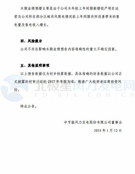 增幅112%!節(jié)能風(fēng)電預(yù)計2017年度實現(xiàn)凈利潤4.01億元
