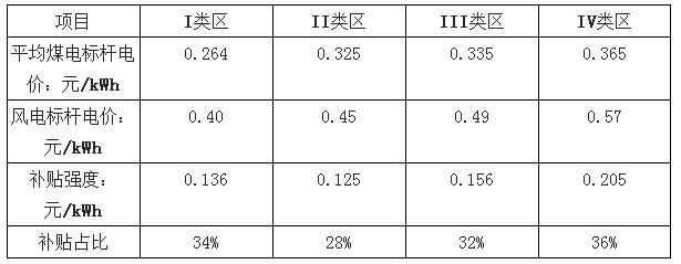 風(fēng)電補(bǔ)貼強(qiáng)度(單位:元/kWh)