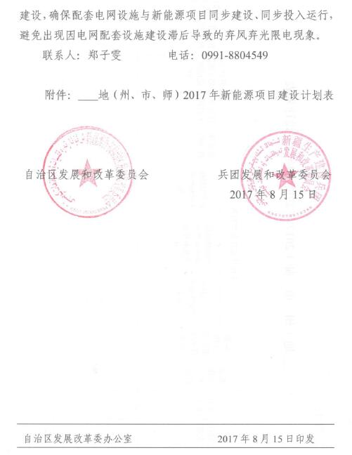 新疆自治區(qū)、建設(shè)兵團(tuán)發(fā)改委近日發(fā)布《關(guān)于下達(dá)自治區(qū)2017年準(zhǔn)東新能源基地 百里風(fēng)區(qū)風(fēng)電基地新能源項(xiàng)目建設(shè)計(jì)劃的通知》。通知指出,2017年準(zhǔn)東新能源基地、百里風(fēng)區(qū)風(fēng)電基地新能源項(xiàng)目新增建設(shè)計(jì)劃300萬(wàn)千瓦,其中:風(fēng)電200萬(wàn)千瓦、光伏100萬(wàn)千瓦。一直以來(lái)受困于棄風(fēng)限電而無(wú)新建風(fēng)電指標(biāo)的新疆,終于有了新風(fēng)電項(xiàng)目,曾經(jīng)的風(fēng)電主戰(zhàn)場(chǎng)又有了新的生機(jī)。以下為通知原文: