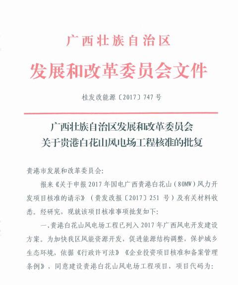 廣西發(fā)改委核準(zhǔn)國電貴港百花山80MW風(fēng)電項目(附文件)