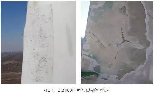 在天橋山項目的另外一起083葉片折斷事故中,葉片L40.75米處折斷,在損傷處同樣發(fā)現(xiàn)了明顯的廠外不合格維修痕跡。葉片表面存在明顯的油漆后修補色差、表面粗糙,打磨檢查發(fā)現(xiàn)有大量的膠粘劑,甚至沒有鋪設(shè)纖維布。無論從產(chǎn)品結(jié)構(gòu)到油漆外觀的修復(fù),都嚴(yán)重不符合質(zhì)量要求。